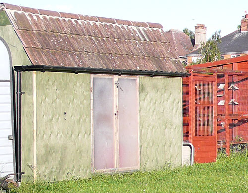 Loft one: Centre Right of picture 24' x 8' (4 sections), 2 x 8' sections for widowhood cocks, 1 x 4' section for Stock, 1 x 4' for corn store